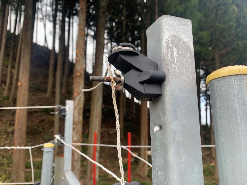 電気柵は鉄に触れると一気に漏電してしまいます。施工や修繕を行う際は十分な注意が必要です。
