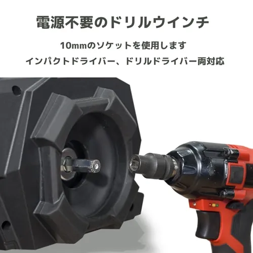 | ウインチシャフト | 10mmソケット(6角) / ドリルチャックにも対応 |