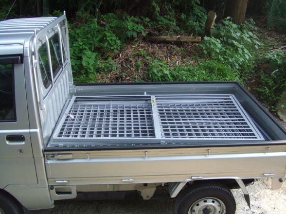 【写真:軽トラ積載時。分割すれば荷台にすっぽりと収まります。】